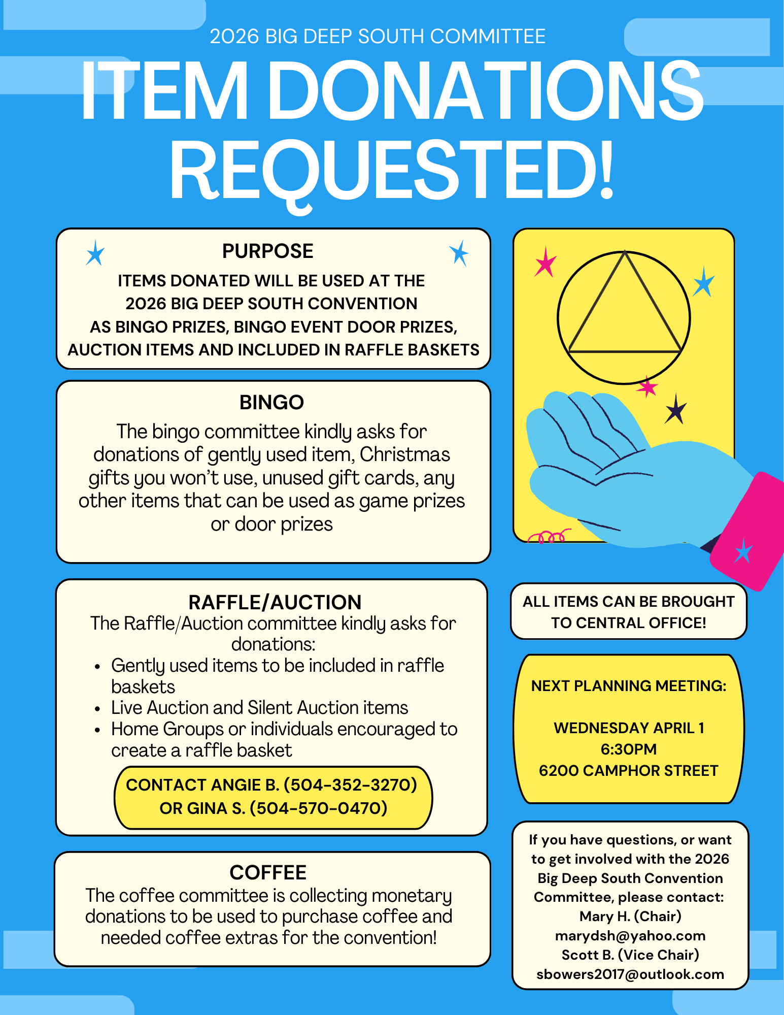 Anyone interested in the position is encouraged to submit a resume by email to mailto: gnoserviceboard@gmail.com. During this transition, Central Office remains open and fully operational thanks to the support of our committed volunteers and Service Board Trustees. Their help has ensured that services continue uninterrupted while the search for a new Office Manager moves forward.